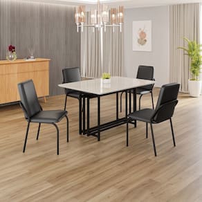 Este conjunto de mesa retangular e 4 cadeiras oferece estilo e praticidade. Com estrutura tubular em aço para estabilidade, o tampo em MDF Laca off white com vidro adiciona sofisticação e resistência a riscos e manchas. As cadeiras combinam harmoniosamente com a mesa, garantindo conforto com estofamento. Ideal para diversos espaços, é perfeito para receber convidados ou desfrutar de refeições em família, criando um ambiente acolhedor e elegante.