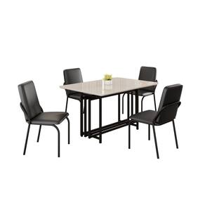 Conjunto Sala de Jantar Mesa 120x90cm Base Pérola Tampo MDF com Vidro Malibu Preto Fosco