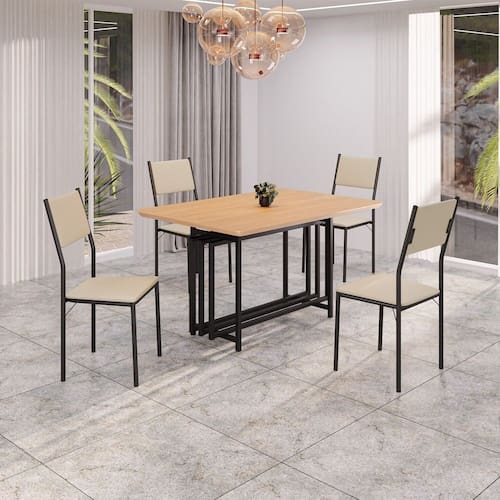 Este conjunto de mesa retangular e 4 cadeiras oferece estilo e praticidade. Com estrutura tubular em aço para estabilidade, o tampo em MDF cinamomo adiciona sofisticação e resistência a riscos e manchas. As cadeiras combinam harmoniosamente com a mesa, garantindo conforto com estofamento. Ideal para diversos espaços, é perfeito para receber convidados ou desfrutar de refeições em família, criando um ambiente acolhedor e elegante. Medida da Mesa (A x L x P): 77cm x 120cm x 90cm Peso da Mesa: 20,1 kg Mesa suporta até: 10.0000 Acabamento da Cadeira/Banco: Pintura Texturizada Acabamento da Mesa: Melamínico Ambiente Principal: Sala de Jantar Cadeira/Banco estofada: Encosto e Assento Estofados Cadeira/Banco Estofada: Encosto e Assento Estofados Cadeira/Banco suporta até: 120.0000 codigo_ean: 7909903964507 Complexidade da Montagem: Baixa: pode ser montado por uma pessoa sozinha Cor: Creme / Preto Fosco Cor do Produto: Creme / Preto fosco De Canto (Canto Alemão): Não Enchimento do Assento: Espuma D-12 Escala de Brilho: Semi-Fosco Espessura do Tampo: 20 mm Formato do Tampo: Retangular Itens Inclusos: 1 MESA, 4 CADEIRAS, MANUAL DE MONTAGEM E FERRAGENS. Linha ou Coleção: Florença Manual de Montagem e Instalação: https://product-hub-prd.madeiramadeira.com.br/955849/documents/cffb3c93-8bd3-4e1f-a125-327b0c93e0f721668284938172182194973.pdf Material da Base da Mesa: Aço Material da Estrutura da Cadeira: Aço Material do Tampo: MDF Medida da Cadeira/Banco (A x L x P): 90,5cm x 44,5cm x 49cm Medida do Tampo (L x C x E): 90cm x 120cm x 2cm Mesa Extensível: Não Necessita Montagem: Sim Origem do Produto: Nacional Peso da Cadeira/Banco: 4,74 kg Possui Apoio Para os Pés: Não Quantidade de Lugares: 04 Recomendações de Uso, Manutenção e Limpeza: Usar um pano de tecido macio e seco, evitar detergentes, alvejantes e produtos químicos de limpeza; no tampo usar tecido macio levemente umedecido. Revestimento da Cadeira/Banco: Couro Ecológico Sistema de Montagem: PARAFUSOS