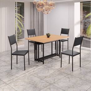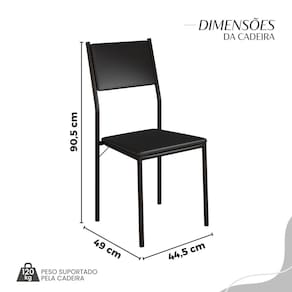 Este conjunto de mesa retangular e 4 cadeiras oferece estilo e praticidade. Com estrutura tubular em aço para estabilidade, o tampo em MDF cinamomo adiciona sofisticação e resistência a riscos e manchas. As cadeiras combinam harmoniosamente com a mesa, garantindo conforto com estofamento. Ideal para diversos espaços, é perfeito para receber convidados ou desfrutar de refeições em família, criando um ambiente acolhedor e elegante. Medida da Mesa (A x L x P): 77cm x 120cm x 90cm Peso da Mesa: 20,1 kg Mesa suporta até: 10.0000 Acabamento da Cadeira/Banco: Pintura Texturizada Acabamento da Mesa: Melamínico Ambiente Principal: Sala de Jantar Cadeira/Banco estofada: Encosto e Assento Estofados Cadeira/Banco Estofada: Encosto e Assento Estofados Cadeira/Banco suporta até: 120.0000 codigo_ean: 7909903964255 Complexidade da Montagem: Baixa: pode ser montado por uma pessoa sozinha Cor: Preto Cor do Produto: Preto De Canto (Canto Alemão): Não Enchimento do Assento: Espuma D-12 Escala de Brilho: Semi-Fosco Espessura do Tampo: 20 mm Formato do Tampo: Retangular Itens Inclusos: 1 MESA, 4 CADEIRAS, MANUAL DE MONTAGEM E FERRAGENS. Linha ou Coleção: Florença Manual de Montagem e Instalação: https://product-hub-prd.madeiramadeira.com.br/925900/documents/6840b711-9ed9-4a65-a867-ff5e3ea5c2d921668284938172182194973.pdf Material da Base da Mesa: Aço Material da Estrutura da Cadeira: Aço Material do Tampo: MDF Medida da Cadeira/Banco (A x L x P): 90,5cm x 44,5cm x 49cm Medida do Tampo (L x C x E): 90cm x 120cm x 2cm Mesa Extensível: Não Necessita Montagem: Sim Origem do Produto: Nacional Peso da Cadeira/Banco: 4,74 kg Possui Apoio Para os Pés: Não Quantidade de Lugares: 04 Recomendações de Uso, Manutenção e Limpeza: Usar um pano de tecido macio e seco, evitar detergentes, alvejantes e produtos químicos de limpeza; no tampo usar tecido macio levemente umedecido. Revestimento da Cadeira/Banco: Couro Ecológico Sistema de Montagem: PARAFUSOS