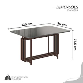 Medida da Mesa (A x L x P): 77,5cm x 120cm x 90cm