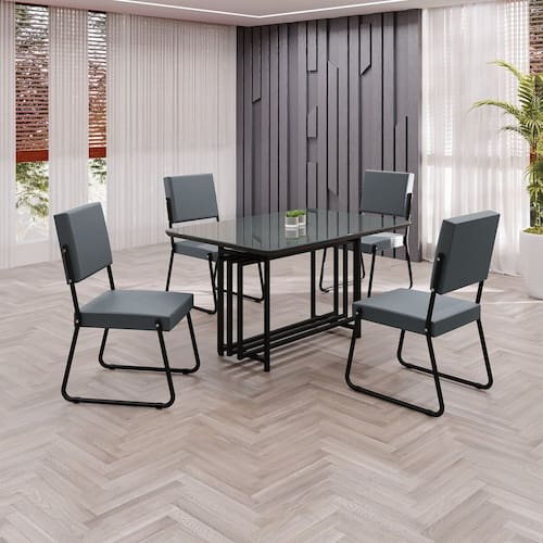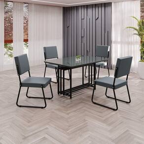 Este conjunto de mesa retangular e 4 cadeiras oferece estilo e praticidade. Com estrutura tubular em aço para estabilidade, o tampo em MDF Laca grafite com vidro adiciona sofisticação e resistência a riscos e manchas. As cadeiras combinam harmoniosamente com a mesa, garantindo conforto com estofamento. Ideal para diversos espaços, é perfeito para receber convidados ou desfrutar de refeições em família, criando um ambiente acolhedor e elegante.