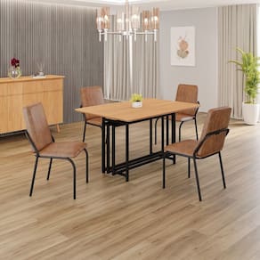 Este conjunto de mesa retangular e 4 cadeiras oferece estilo e praticidade. Com estrutura tubular em aço para estabilidade, o tampo em MDF cinamomo adiciona sofisticação e resistência a riscos e manchas. As cadeiras combinam harmoniosamente com a mesa, garantindo conforto com estofamento. Ideal para diversos espaços, é perfeito para receber convidados ou desfrutar de refeições em família, criando um ambiente acolhedor e elegante.