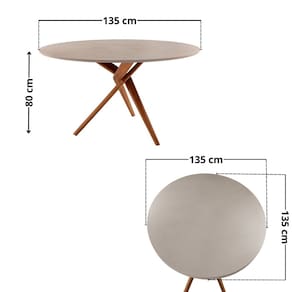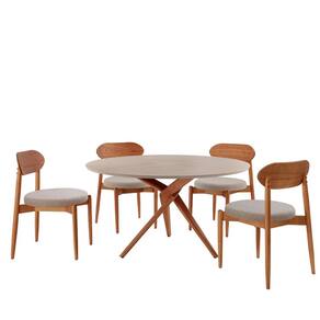 Conjunto Sala de Jantar Mesa 135cm Tampo Redondo Texturizado e 4 Cadeiras Hope Brisa / Imbuia Natural / Off White - Marrom