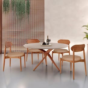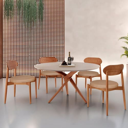Dê um novo toque de sofisticação e aconchego ao seu lar com o Conjunto Sala de Jantar Hope. Com uma mesa redonda de 135 cm e 4 cadeiras em madeira maciça, este conjunto foi projetado para quem busca um equilíbrio perfeito entre design, qualidade e conforto.