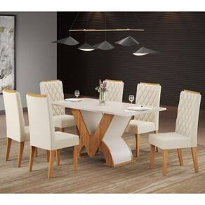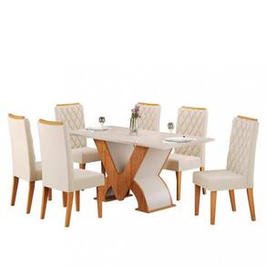 Características: Estrutura em MDF/MDP Tampo com espessura 25 mm Tempo suporta até 50 kg distribuídos 6 cadeiras Assento em espuma D20 Encosto em espuma D12 Revestimento com tecido veludo Cada cadeira suporta 90 kg Acabamento sem-brilho, pintura UV