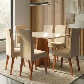 O conjunto de mesa Moove com 6 cadeiras Milano é a escolha ideal para quem busca elegância, conforto e funcionalidade na sala de jantar. A mesa possui tampo em MDF, com design moderno e base resistente que garante estabilidade e sofisticação ao ambiente. As cadeiras Milano são estofadas, proporcionando conforto no uso diário, e contam com estrutura em madeira maciça, que assegura resistência, durabilidade e um acabamento de alto padrão. Um conjunto harmonioso, perfeito para compor espaços acolhedores e cheios de estilo.