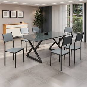 Este conjunto de mesa retangular e 6 cadeiras oferece estilo e praticidade. Com estrutura tubular em aço para estabilidade, o tampo em Mdf Laca grafite com vidro adiciona sofisticação e resistência a riscos e manchas. As cadeiras combinam harmoniosamente com a mesa, garantindo conforto com estofamento. Ideal para diversos espaços, é perfeito para receber convidados ou desfrutar de refeições em família, criando um ambiente acolhedor e elegante.