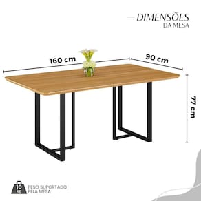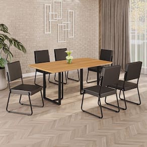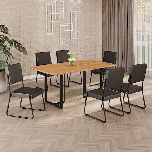 Este conjunto de mesa retangular e 6 cadeiras oferece estilo e praticidade. Com estrutura tubular em aço para estabilidade, o tampo em MDF cinamomo adiciona sofisticação e resistência a riscos e manchas. As cadeiras combinam harmoniosamente com a mesa, garantindo conforto com estofamento. Ideal para diversos espaços, é perfeito para receber convidados ou desfrutar de refeições em família, criando um ambiente acolhedor e elegante. Medida da Mesa (A x L x P): 77cm x 160cm x 90cm Peso da Mesa: 24,8 kg Mesa suporta até: 10 kg Acabamento da Cadeira/Banco: Pintura Texturizada Acabamento da Mesa: Melamínico Ambiente Principal: Sala de Jantar Cadeira/Banco estofada: Encosto e Assento Estofados Cadeira/Banco suporta até: 120 kg Complexidade da Montagem: Baixa: pode ser montado por uma pessoa sozinha Cor: Preto Cor do Produto: Preto Cor Secundária: Preto De Canto (Canto Alemão): Não Enchimento do Assento: Espuma D-26 Escala de Brilho: Semi-Fosco Espessura do Tampo: 20 mm Estrutura do Assento: MDF, Eucalipto, espuma e Couro ecológico. Formato do Tampo: Retangular Itens Inclusos: 1 Mesa, 6 Cadeiras, Manual De Montagem E Ferragens. Linha ou Coleção: Napoli Manual de Montagem e Instalação: https://cdn2.madeiramadeira.com.br/atributo/moveis-teixeira/2170493-4938-1721906798378.pdf Material da Base da Mesa: Aço Material da Estrutura da Cadeira: Aço Material do Tampo: MDF Medida da Cadeira/Banco (A x L x P): 94cm x 47,5cm x 59cm Medida do Tampo (L x C x E): 90cm x 160cm x 2cm Mesa Extensível: Não Necessita Montagem: Sim Origem do Produto: Nacional Peso da Cadeira/Banco: 7,06 kg Possui Apoio Para os Pés: Não Quantidade de Lugares: 06 Recomendações de Uso, Manutenção e Limpeza: Usar um pano de tecido macio e seco, evitar detergentes, alvejantes e produtos químicos de limpeza; no tampo usar tecido macio levemente umedecido. Revestimento da Cadeira/Banco: Couro Ecológico Sistema de Montagem: PARAFUSOS