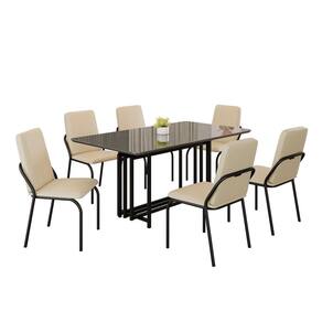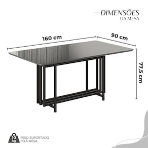 Este conjunto de mesa retangular e 6 cadeiras oferece estilo e praticidade. Com estrutura tubular em aço para estabilidade, o tampo em MDF Laca grafite com vidro adiciona sofisticação e resistência a riscos e manchas. As cadeiras combinam harmoniosamente com a mesa, garantindo conforto com estofamento. Ideal para diversos espaços, é perfeito para receber convidados ou desfrutar de refeições em família, criando um ambiente acolhedor e elegante. Medida da Mesa (A x L x P): 77,5cm x 120cm x 90cm Peso da Mesa: 47,4 kg Mesa suporta até: 10 kg Acabamento da Cadeira/Banco: Pintura Texturizada Acabamento da Mesa: Laca Ambiente Principal: Sala de Jantar Cadeira/Banco estofada: Encosto e Assento Estofados Cadeira/Banco suporta até: 120 kg Complexidade da Montagem: Baixa: pode ser montado por uma pessoa sozinha Cor: Creme / Preto Cor do Produto: Creme / Preto Cor Secundária: Bege De Canto (Canto Alemão): Não Enchimento do Assento: Espuma D-26 Escala de Brilho: Semi-Fosco Espessura do Tampo: 25 mm Estrutura do Assento: MDF 15mm, espuma D-26 e couro ecológico. Formato do Tampo: Retangular Itens Inclusos: 1 MESA, 6 CADEIRAS, MANUAL DE MONTAGEM E FERRAGENS. Manual de Montagem e Instalação: https://cdn2.madeiramadeira.com.br/atributo/moveis-teixeira/2175956-4938-17220261016054.pdf Material da Base da Mesa: Aço Material da Estrutura da Cadeira: Aço Material do Tampo: MDF/Vidro Medida da Cadeira/Banco (A x L x P): 88,8cm x 44cm x 51cm Medida do Tampo (L x C x E): 90cm x 160cm x 2,5cm Mesa Extensível: Não Necessita Montagem: Sim Origem do Produto: Nacional Peso da Cadeira/Banco: 6,16 kg Possui Apoio Para os Pés: Não Quantidade de Lugares: 06 Recomendações de Uso, Manutenção e Limpeza: Usar um pano de tecido macio e seco, evitar detergentes, alvejantes e produtos químicos de limpeza; no tampo usar tecido macio levemente umedecido. Revestimento da Cadeira/Banco: Couro Ecológico Sistema de Montagem: Parafusos e cavilhas