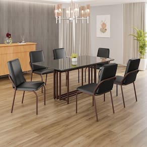 Este conjunto de mesa retangular e 6 cadeiras oferece estilo e praticidade. Com estrutura tubular em aço para estabilidade, o tampo em MDF Laca grafite com vidro adiciona sofisticação e resistência a riscos e manchas. As cadeiras combinam harmoniosamente com a mesa, garantindo conforto com estofamento. Ideal para diversos espaços, é perfeito para receber convidados ou desfrutar de refeições em família, criando um ambiente acolhedor e elegante.