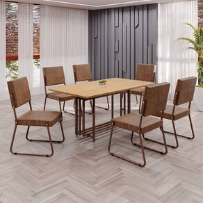 Este conjunto de mesa retangular e 6 cadeiras oferece estilo e praticidade. Com estrutura tubular em aço para estabilidade, o tampo em MDF cinamomo adiciona sofisticação e resistência a riscos e manchas. As cadeiras combinam harmoniosamente com a mesa, garantindo conforto com estofamento. Ideal para diversos espaços, é perfeito para receber convidados ou desfrutar de refeições em família, criando um ambiente acolhedor e elegante. Medida da Mesa (A x L x P): 76,5cm x 160cm x 90cm Peso da Mesa: 24,4 kg Mesa suporta até: 10 kg Acabamento da Cadeira/Banco: Pintura Texturizada Acabamento da Mesa: Melamínico Ambiente Principal: Sala de Jantar Cadeira/Banco estofada: Encosto e Assento Estofados Cadeira/Banco suporta até: 120 kg Complexidade da Montagem: Baixa: pode ser montado por uma pessoa sozinha Cor: Marrom Cor do Produto: Marrom Cor Secundária: Marrom De Canto (Canto Alemão): Não Enchimento do Assento: Espuma D-26 Escala de Brilho: Semi-Fosco Espessura do Tampo: 20 mm Estrutura do Assento: MDF, Eucalipto, espuma e Couro ecológico. Formato do Tampo: Retangular Itens Inclusos: 1 Mesa, 6 Cadeiras, Manual De Montagem E Ferragens. Linha ou Coleção: Napoli Manual de Montagem e Instalação: https://cdn2.madeiramadeira.com.br/atributo/moveis-teixeira/2171155-4938-17219287859193.pdf Material da Base da Mesa: Aço Material da Estrutura da Cadeira: Aço Material do Tampo: MDF Medida da Cadeira/Banco (A x L x P): 94cm x 47,5cm x 59cm Medida do Tampo (L x C x E): 90cm x 160cm x 1,5cm Mesa Extensível: Não Necessita Montagem: Sim Origem do Produto: Nacional Peso da Cadeira/Banco: 7,06 kg Possui Apoio Para os Pés: Não Quantidade de Lugares: 06 Recomendações de Uso, Manutenção e Limpeza: Usar um pano de tecido macio e seco, evitar detergentes, alvejantes e produtos químicos de limpeza; no tampo usar tecido macio levemente umedecido. Revestimento da Cadeira/Banco: Couro Ecológico Sistema de Montagem: Parafusos