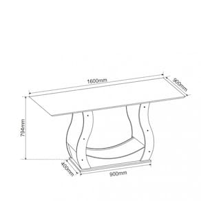 Dimensões Mesa: Altura: 79,4 cm Largura: 160 cm Profundidade: 80 cm