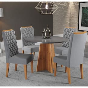 Características: Estrutura em MDF/MDP Tampo com espessura 25 mm Tempo suporta até 50 kg distribuídos 4 cadeiras Assento em espuma D20 Encosto em espuma D12 Revestimento com tecido veludo Cada cadeira suporta 90 kg Acabamento sem-brilho, pintura UV