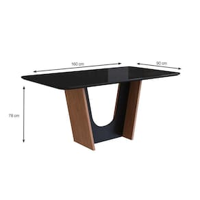 Conjunto Sala de Jantar Mesa 90x160cm T Vidro com 6 Cadeiras Madeira Maciça Tecido Joli Canela/ Cinza/ Preto - Marrom