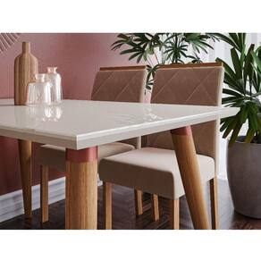 Sala de jantar Adele de 1,30x0,80 com 4 cadeiras Fernanda. Que tal reunir a sua família para um jantar? Nesse momento a Cimol vai estar presente, proporcionando situações agradáveis e descontraídas! A mesa Adele possui os pés em madeira tauari, seu tampo é em MDF/vidro com bordas chanfradas e acabamento em laca. Já as cadeiras Fernanda são uma ótima opção pois a sua estrutura é toda em madeira tauari com pintura em verniz, o assento e encosto possui espumas de alta densidade proporcionando maior conforto.