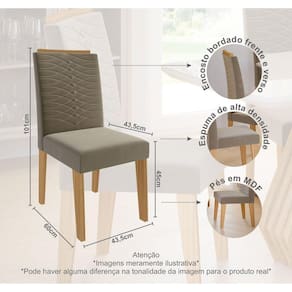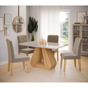 Sala de jantar Agata de 1,30x,0,80 com 4 cadeiras Clarice. Que tal reunir a sua família para um jantar? Nesse momento a Cimol vai está presente, proporcionando situações agradáveis e descontraídas! A mesa Agata possui uma base em formato triangular, seu tampo é em Vidro/MDF com bordas chanfradas e acabamento em laca. Já as cadeiras Clarice são uma ótima opção pois a sua estrutura é em mdf com pintura u.v, o assento e encosto possui espumas de alta densidade proporcionando maior conforto. Com um design inovador, a Cimol busca sempre um estilo moderno para o seu ambiente! **IMAGENS MERAMENTE ILUSTRATIVA** Medida da Mesa (A x L x P): 77,5x80x130cm Peso da Mesa: 55.75 Mesa suporta até: 30 Acabamento da Cadeira/Banco: Pintura UV Acabamento da Mesa: Pintura UV Almofada do assento: Fixa Altura do Conjunto: Ambiente Principal: Sala de Jantar Apoio para Braços Estofado: Cadeira/Banco estofada: Encosto e Assento Estofados Cadeira/Banco suporta até: 100 Complexidade da Montagem: Média: pode ser montado por mais de uma pessoa e/ou necessite de maior conhecimento para montagem Cor: Marrom/Off White/Joli Cor da Base: Marrom Cor do Produto: Marrom/Off White/Joli Cor do Tampo: Bege Cor Flex: Não Cor Secundária: Marrom De Canto (Canto Alemão): Não Design da Base: Trapézio Enchimento do Assento: Espuma D-23 Enchimento do Encosto: Espuma D-20 Escala de Brilho: Semi-Brilho Espessura do Tampo: 39 Espessura do Vidro: Estrutura do Assento: Espuma e Tecido Estrutura do Encosto: Espuma/Tecido 74mm Formato do Tampo: Retangular Informações Complementares: Itens Inclusos: 1 Mesa, 4 Cadeiras, Kit Ferragens e Manual de Montagem Linha ou Coleção: Agata Manual de Especificação Técnica: Manual de Montagem e Instalação: https://cdn2.madeiramadeira.com.br/atributo/cimol/1106049-mesa-agata-cadeira-clarice.pdf Material da Base da Mesa: MDF Material da Estrutura da Cadeira: MDF Material do Tampo: Vidro/MDF Medida da Base (A x L x P): Medida da Cadeira/Banco (A x L x P): 101x43,5x60cm Medida do Canto Alemão (A x L x P): Medida do Suporte Giratório (L x C x E): Medida do Tampo (L x C x E): 80x130x3,9cm Mesa Extensível: Não Montagem Flex: Necessita Montagem: Sim Origem do Produto: Nacional Peso da Cadeira/Banco: 10.29 Possui Apoio para Braços: Possui Apoio Para os Pés: Não Possui Suporte Giratório: Não Quantidade de Lugares: 04 Recomendações de Uso, Manutenção e Limpeza: Para manter seu móvel novo por muito mais tempo, evite locais úmidos, mantenha-o distante de líquidos. Para limpá-lo com segurança utilize uma flanela seca sem produtos abrasivos Revestimento da Cadeira/Banco: Suede Sistema de Montagem: Parafusos, porcas e cavilhas Tipo de Madeira Maciça da Base da Mesa: Tipo de Madeira Maciça do Tampo: Vidro Temperado: Sim