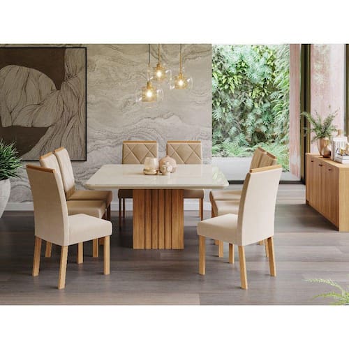 Conjunto Sala de Jantar Mesa Ana 130cm 8 Cadeiras Fernanda Cimol - Off White