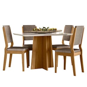 Conjunto Sala de Jantar Mesa Anitta 1,20m Tampo Mdf e Vidro com 4 Cadeiras Carol Ypê/Off White/Lux - New Ceval