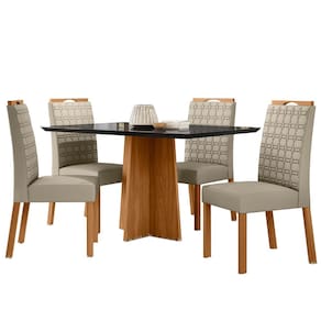 Conjunto Sala de Jantar Mesa Anitta 1,35m Tampo Mdf e Vidro com 4 Cadeiras Mariah Ypê/Preto/Ja01 - New Ceval