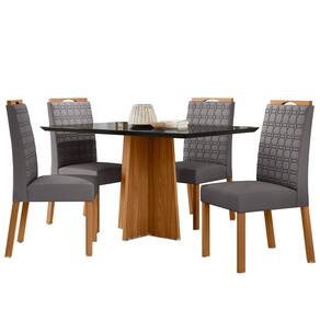 Conjunto Sala de Jantar Mesa Anitta 1,35m Tampo Mdf e Vidro com 4 Cadeiras Mariah Ypê/Preto/Ja02 - New Ceval