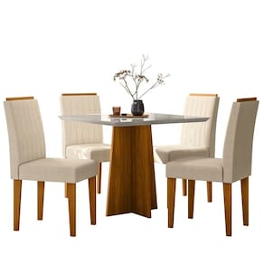 Conjunto Sala de Jantar Mesa Tampo Vidro/MDF Anitta 90cm com 4 Cadeiras Ana