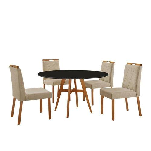 Escala de Brilho: Semi-Brilho Cor Predominante: Mel Encosto e Assento Estofados, Revestidos em Veludo ou Linho Enchimento do Assento: Espuma D-20 Medida da Mesa (A x D): 78 X 110 cm Medida da Base (A x L x P): 75 X 50,5 X 50,5 cm Medida do Tampo (D x E): 110 X 2,1 cm Medida da Cadeira/Banco (A x L x P): 94 X 46 X 55 cm Material da Base da Mesa: MDF/Madeira Maciça Tipo de Madeira Maciça da Base da Mesa: Eucalipto Tratado Imunizado e seco em Estufa Peso da Cadeira: 8,5 Kg Cadeira Suporta Até 120 Kg Acabamento da Cadeira: Verniz Natural Material da Estrutura da Cadeira: MDF/Madeira Maciça Cor do Tampo: Preto Cor da Base: Mel Enchimento do Encosto: Espuma D-14 Almofada do Assento: Fixa Estrutura do Assento: MDF 6mm/Espuma 40mm Peso da Mesa: 19 Kg Acabamento da Mesa: Verniz Natural Mesa Suporta Até 30 Kg Formato do Tampo: Redondo Material do Tampo: Vidro 3mm/MDF 18mm
