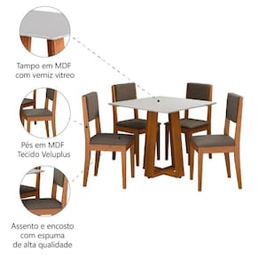 DIFERENCIAL: Material MDF de alta resistência, cadeiras com assento e encosto acolchoados, tecido veluplus.