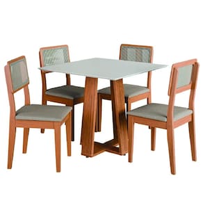 Conjunto Sala de Jantar Mesa Athenas Quadrada 4 Cadeiras Santiago Dobuê - Bege Médio