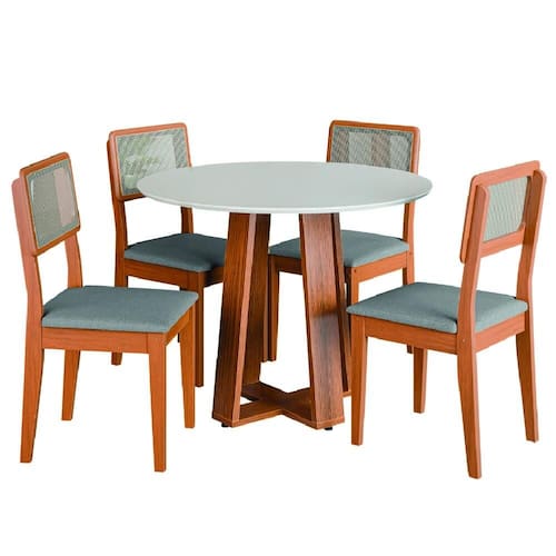 MODELO: Conjunto Sala de Jantar Mesa Athenas Redonda 4 Cadeiras Santiago