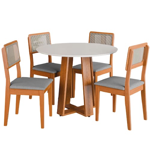 MODELO: Conjunto Sala de Jantar Mesa Athenas Redonda 4 Cadeiras Santiago