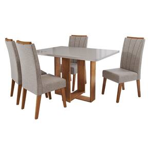 Características: Estrutura MDP 4 Cadeiras Cadeira em madeira eucalipto Cada cadeira suporta até 90kg Revestimento com tecido linho Encosto bordado com espaldar Assento D26 Tampo com canto arredondado Mesa suporta até 50kg distribuído Tampo MDF 18mm Vidro 4mm