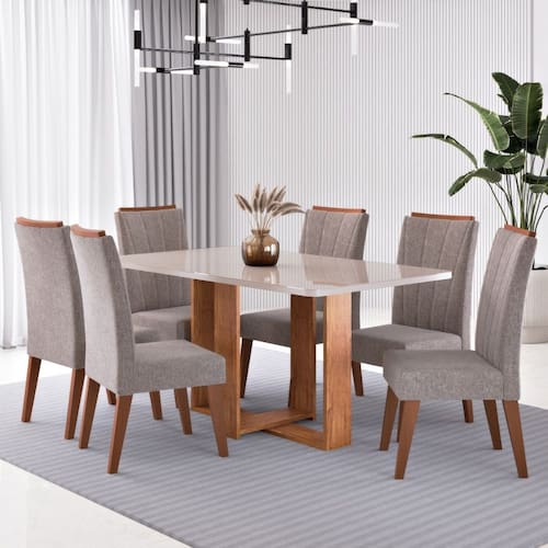 Conjunto de Jantar Berlim Mesa com Vidro e 6 Cadeiras Safira Viero