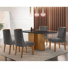 Características: 4 Cadeiras Cada cadeira suporta até 120 kg Estrutura em MDF Revestimento com tecido linho Tampo com vidro temperado Vidro 4mm