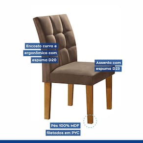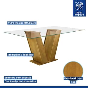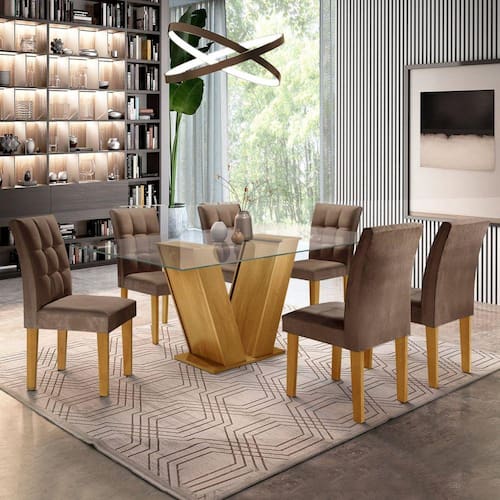 Deixe seu lar repleto de charme e bom gosto com este Conjunto de Mesa Classic com 6 Cadeiras Vitória. Ideal para deixar sua Sala de Jantar muito mais convidativa e melhor decorada, ela é composta por móveis de qualidade e muita resistência. Medida da Mesa (A x L x P): 79,3cm x 160cm x 80cm Peso da Mesa: 39 kg Mesa suporta até: 45.0000 Acabamento da Cadeira/Banco: Pintura UV Acabamento da Mesa: Pintura UV Almofada do assento: Fixa Ambiente: Sala de Jantar Ambiente Principal: Sala de Jantar Cadeira/Banco Estofada: Encosto e Assento Estofados Cadeira/Banco estofada: Encosto e Assento Estofados Cadeira/Banco suporta até: 120.0000 codigo_ean: 7908003617153 Complexidade da Montagem: Alta: deve ser montado por um montador especializado Cor: Ypê/Animale Marrom 52 Cor: Ypê/Animale Marrom 52 Cor Secundária: Marrom De Canto (Canto Alemão): Não Design da Base: Em V Enchimento do Assento: Espuma D-23 Enchimento do Encosto: Espuma D-20 Escala de Brilho: Fosco Espessura do Tampo: 8 mm Espessura do Vidro: 8 mm Estrutura do Assento: MDF Estrutura do Encosto: MDF Formato do Tampo: Retangular Itens Inclusos: 1 Mesa, 6 Cadeiras e Manual de Montagem. Linha ou Coleção: Vitória Manual de Montagem e Instalação: https://product-hub-prd.madeiramadeira.com.br/362150/documents/ff41016b-4f97-4a9d-acdb-8af0079cd8dbsaclassiccomcadeiravitoria.zip Manutenção: Limpeza com pano macio e levemente umedecido. Não utilizar solventes a base e de inflamáveis. Não utilizar produtos abrasivos. Material da Base da Mesa: MDF/MDP Material da Estrutura da Cadeira: MDF Material do Tampo: Vidro Medida da Cadeira/Banco (A x L x P): 97,5cmx44cmx55cm Medida do Tampo (L x C x E): 160cmx80cmx0,8cm Mesa Extensível: Não Necessita Montagem: Sim Origem do Produto: Nacional Possui Apoio Para os Pés: Não Quantidade de Cadeiras: 6 Quantidade de Lugares: 06 Recomendações de Uso, Manutenção e Limpeza: Limpeza com pano macio e levemente umedecido. Não utilizar solventes a base e de inflamáveis. Não utilizar produtos abrasivos. Resistente à Chuva: Não Revestimento da Cadeira/Banco: Veludo Sistema de Montagem: Parafuso e Minifix Ean: 7908003617153
