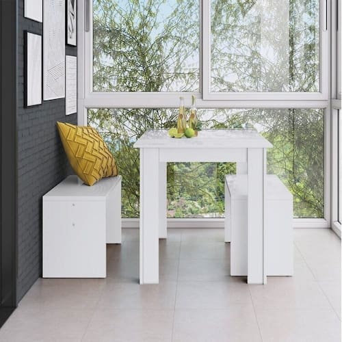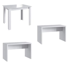 Conjunto Mesa Fixa com 02 Banco 700, CJE11000 da Móveis Canção. Conjunto confeccionado em MDP de alta qualidade proporcionando conforto e beleza para seu lar. Este conjunto pode ser facilmente transportado pelo seus cômodos tornando-o versátil e multiuso. Possui Portas: Não Altura do Conjunto: 75 cm Ambiente: null Ambiente Principal: Sala de Jantar Cor: Branco Informação Complementar: 1x Mesa para Sala de Jantar Fixa 1000x700 Branco Largura: 100 cm Altura: 75 cm Peso: 13,4 kg Profundidade: 70 cm Necessita Montagem: Sim