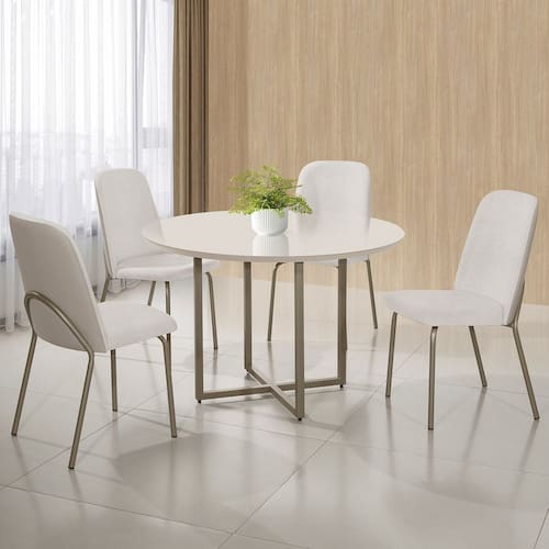 Conjunto Moderno, Elegante Design Classico e Sofisticado. Mesa com Pés Robustos em Aço Carbono com Pintura Electrostática a Pó, Dando Maior Durabilidade ao Produto, Tampo de MDF Com Vidro Colado-Dando Acabamento e Sofisticação a Mesa. Cadeiras Reforçadas, Assento e Encosto Anatomico Estofados, Desenvolvido Pensando no Mais Absoluto Conforto. Conjunto Compacto, se Encaixa a Pequenos Espaços e não Passará Desapercebido no Ambiente que Estiver. Medida da Mesa (A x L x P): 78X110X110 Peso da Mesa: 26,45 kg Mesa suporta até: 40.0000 Acabamento da Cadeira/Banco: Pintura Epóxi Acabamento da Mesa: Pintura Epóxi Acompanha Manual de Instalação: Sim Almofada do assento: Removível Almofada do encosto: Removível Altura do Conjunto: 92 cm Ambiente Principal: Sala de Jantar Cadeira/Banco estofada: Encosto e Assento Estofados Cadeira/Banco Estofada: Encosto e Assento Estofados Cadeira/Banco suporta até: 120.0000 codigo_ean: 7909903966884 Complexidade da Montagem: Baixa: pode ser montado por uma pessoa sozinha Cor: Cinza/Bege Cor do Produto: Cinza/Bege De Canto (Canto Alemão): Não Design da Base: Em X Enchimento do Assento: Espuma D-23 Enchimento do Encosto: Espuma D-23 Escala de Brilho: Semi-Brilho Espessura do Tampo: 30 mm Formato do Tampo: Redondo Informações Complementares: CONJUNTO EM AÇO NA COR CINZA- TAMPO MDF COM VIDRO COLADO NA COR OFF WHITE - ASSENTO E FRENTE DO ENCOSTO TECIDO BEGE (A-512) E VERSO DO ENCOSTO REVESTIMENTO SINTÉTICO BEGE (A-508) Itens Inclusos: 2 PÉS EM L, 1 PÉ EM U E UMA CHAPA DE UNIÃO, TAMPO, 4 ESTRUTURA DE CADEIRA, 4 ASSENTOS, 4 ENCOSTO , MANUAL E KIT DE MONTAGEM Linha ou Coleção: CALIFORNIA Manual de Especificação Técnica: https://product-hub-prd.madeiramadeira.com.br/958237/documents/988c9ab9-67f6-44ae-a5b0-a3dd172847cc2445193598517286539017302.pdf Manual de Montagem e Instalação: https://product-hub-prd.madeiramadeira.com.br/958237/documents/7ac02a19-f837-4205-a290-c03c970efe9e2445192598517286539001735.pdf Material da Base da Mesa: Aço Carbono Material da Estrutura da Cadeira: Aço Carbono Material do Tampo: Vidro/MDF Material Principal: Aço Carbono Material Principal das Cadeiras/Bancos: Aço Carbono Medida da Base (A x L x P): 74X90X90 Medida da Cadeira/Banco (A x L x P): 92X46X53 Medida do Tampo (L x C x E): 110X110X3 Mesa Dobrável: Não Mesa Extensível: Não Necessita Montagem: Sim Origem do Produto: Nacional Peso da Cadeira/Banco: 6,15 kg Possui Apoio para Braços: Não Possui Apoio Para os Pés: Não Possui Prateleiras: Não Possui Suporte Giratório: Não Possui Vidro: Sim Quantidade de Cadeiras: 4 Quantidade de Lugares: 04 Recomendações de Uso, Manutenção e Limpeza: Limpeza com pano macio e levemente umedecido. Não ultilizar solventes a base e de inflamáveis. Não utilizar produtos abrasivos. Revestimento da Cadeira/Banco: Poliéster Sistema de Montagem: PARAFUSOS E CHAVE ALLEN Tipo de Assento: Removível Tipo de Encosto: Estofado