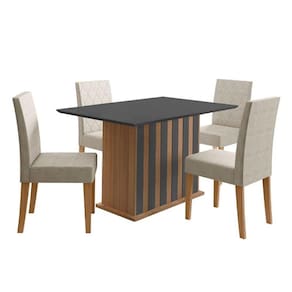 Conjunto Sala de Jantar Mesa com Tampo Chanfrado Amalia 4 Cadeiras Estofadas Jade Poliman - Grafite