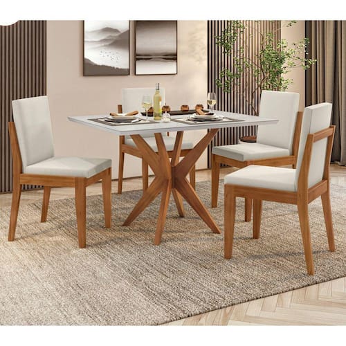 Conjunto Sala de Jantar Mesa Donna com 4 Cadeiras Lady Mel Natural/Off White - Marrom
