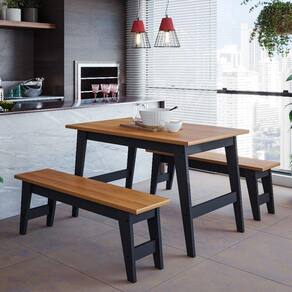 O Conjunto Sala de jantar Aurora conta com uma mesa de 80x130cm e 2 bancos. A mesa Aurora possui tampo em mdf 25mm e acabamento em laca. Já os bancos Aurora tem sua estrutura em mdf com pintura U.V. Com um design inovador a Cimol busca sempre um estilo moderno para o seu ambiente!