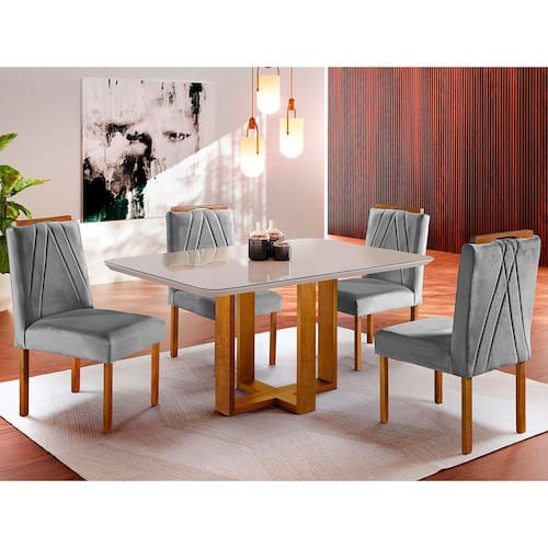 Conjunto Sala de Jantar 4 Lugares Mesa e Cadeiras Móveis Mix