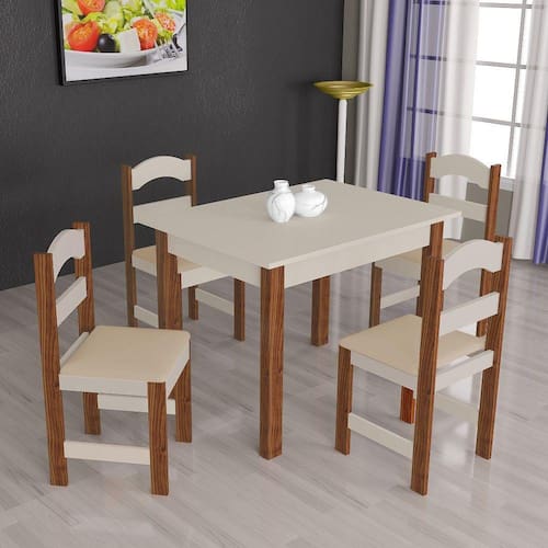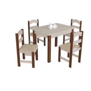 Características Madeira de pinus maciço/MDF Tampo em MDF Acabamento: Pintura superfície impressão UV Acabamento na borda: esmalte PU/fita de borda papel soft cadeira: MDF Assento: MDP revestido de corvim estofado c/espuma D-16 4 Cadeiras