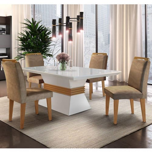 Quanto charme neste conjunto de mesa Santorini, não é mesmo? Tudo começa com esta linda combinação de cores clássicas e que são bem fáceis de inserir em um lar-style aconchegante e sofisticado. Outro ponto positivo são os detalhes: reparou que a estrutura da mesa tem essas linhas retas como toque final do visual? Demais!