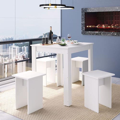 CONJUNTO MESA E BANQUETA AMALFI BRANCO