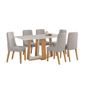Conjunto Sala de Jantar Mesa Easy Pop 170x90cm Tampo Vidro/MDF com 6 Cadeiras Seat Veludo Liso Capuccino Amendoa/Off White Design Moderno, Conforto e Sofisticação para o seu Lar.