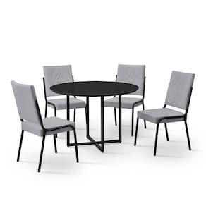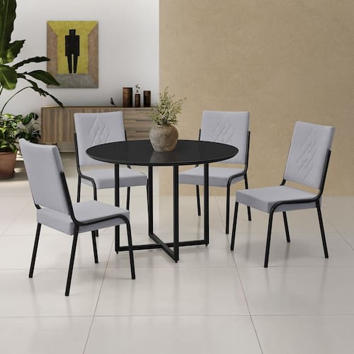 Conjunto Sala de Jantar Mesa em Mdf com Vidro 4 Cadeiras Moscou Preto/Cinza
