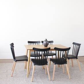 Conjunto composto por: uma Mesa com tampo em MDF de 19 mm, base em madeira seringueira 6 Cadeiras fixa com assento injetado em polipropileno (PP), com encosto vazado e sem braços, possui pernas em madeira de faia. Altura do Conjunto: 84 cm Ambiente: null Ambiente Principal: Sala de Jantar Cor: Preto Informação Complementar: 1x Mesa de Jantar Retangular Finlândia Natural Largura: 120 cm Altura: 75 cm Peso: 19 kg Necessita Montagem: Sim