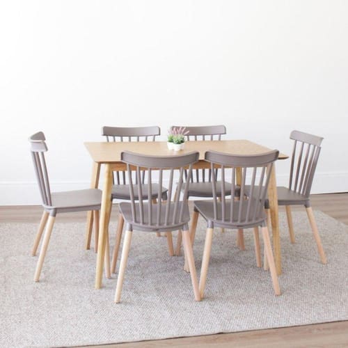 A Mesa Finlândia em madeira é ideal para quem busca elegância e praticidade, seu design rústico garante o detalhe que falta na decoração da sua casa. O conjunto com 6 cadeiras Janaina completa o kit e garante o custo benefício para transformar o estilo divertido da sua casa com muita praticidade e toques de design. Conjunto composto por: uma Mesa com tampo em MDF de 19 mm, base em madeira seringueira + 6 Cadeiras fixa com assento injetado em polipropileno (PP), com encosto vazado e sem braços, possui pernas em madeira de faia. Suporta Até (kg): 120 Possui Rodízio: Não Altura do Conjunto: 84 cm Ambiente: null Ambiente Principal: Sala de Jantar Cor: Cinza Escuro Informação Complementar: 1x Mesa de Jantar Retangular Finlândia MarromlLargura: 120 cmAltura: 75 cmPeso: 19 kgNecessita Montagem: Sim1x Kit 6 Cadeiras Encosto Vazado Janaina Móveis Cinza EscuroLargura: 43Altura: 84Peso: 3.85Profundidade: 51Necessita Montagem: Sim Tamanho: