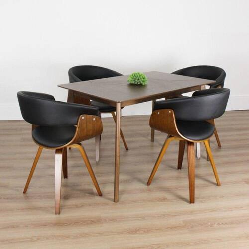 Conjunto composto por: uma Mesa com tampo em MDF de 19 mm, base em madeira seringueira 4 cadeiras em madeira, com assento e encosto estofados em linho ou PU e pés em madeira. Altura do Conjunto: 80 cm Ambiente: null Ambiente Principal: Sala de Jantar codigo_ean: 7908308751262 Cor: Preto Informação Complementar: 1x Mesa de Jantar Retangular Tampo MDF Finlândia Nogueira Largura: 120 cm Altura: 75 cm Peso: 19 kg Profundidade: 75 cm Necessita Montagem: Sim
