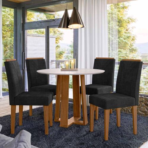 Conjunto Sala de Jantar Mesa Isabela 1,00m com 4 Cadeiras Amanda Ypê/Off White/Ja03 - New Ceval